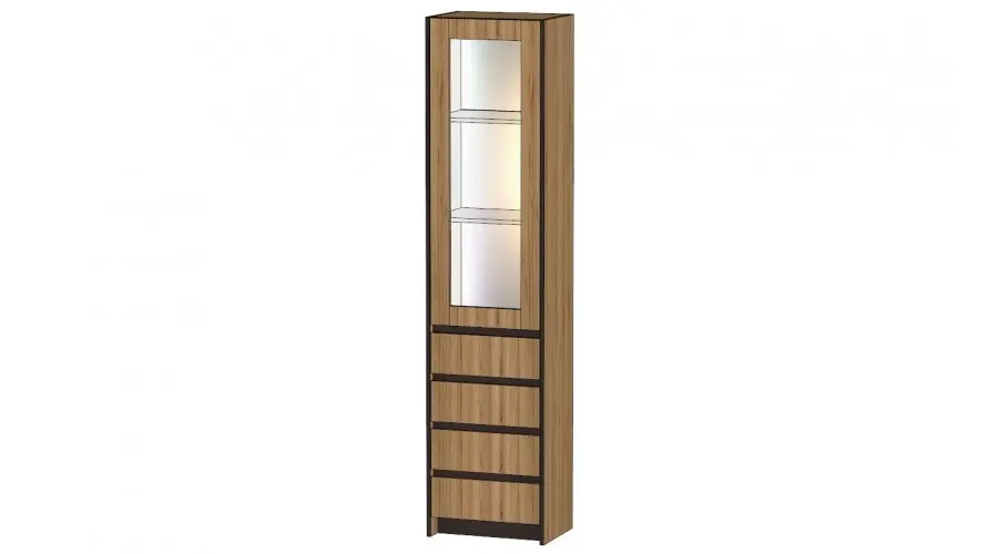 Бостон Буфет Габариты 500(Ш) х 360(Г) х 2100(В) мм Материал ЛДСП Цвет дуб вотан/венге Роликовые направляющие Кромка ПВХ Универсальная сборка