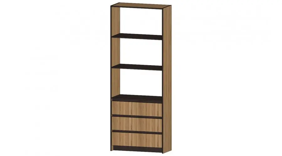 Бостон Стеллаж 3 ящика Габариты 800(Ш) х 360(Г) х 2100(В) мм Материал ЛДСП Цвет дуб вотан/венге Роликовые направляющие Кромка ПВХ Универсальная сборка