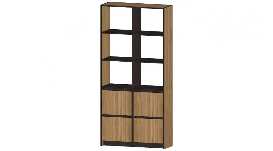 Бостон Стеллаж большой Габариты 966(Ш) х 360(Г) х 2100(В) мм Материал ЛДСП Цвет дуб вотан/венге Кромка ПВХ Универсальная сборка