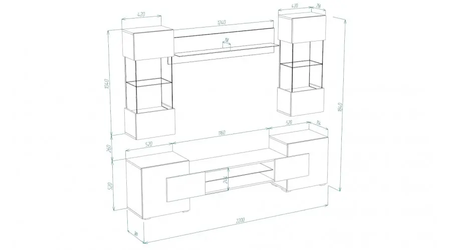 Гостиная Фэнтези графит/кашемир Габариты 2200(Ш) х 354(Г) х 1780(В) мм. Материал ЛДСП. Кромка ПВХ. Стекло прозрачное. Ниша под ТВ: 1160 мм при размещении ТВ на тумбе. Ниша под ТВ: 1360 мм при размещении ТВ на стене. ТВ-тумбу можно заказать отдельно