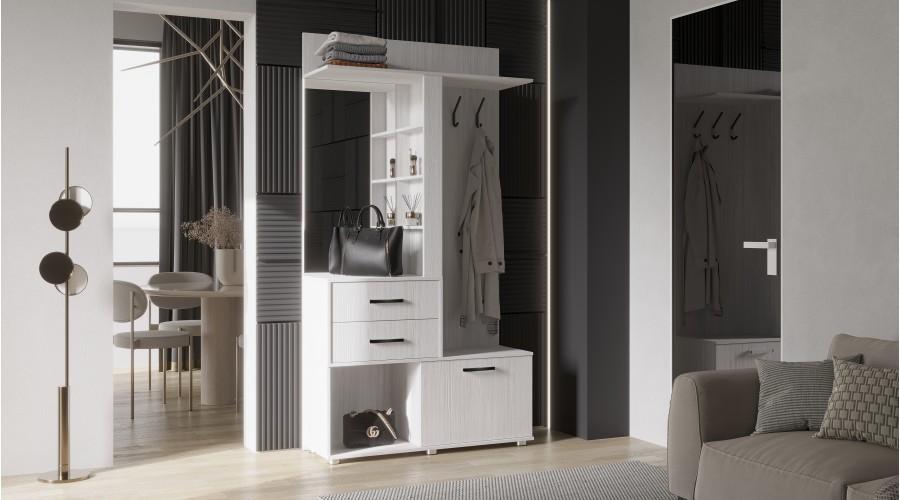 Прихожая Мария анкор светлый Габариты 1118(Ш) х 392(Г) х 2113(В) мм. Материал ЛДСП. Кромка ПВХ. Универсальная сборка на любую сторону. Регулируемые по высоте опоры. Высокопрочные крючки