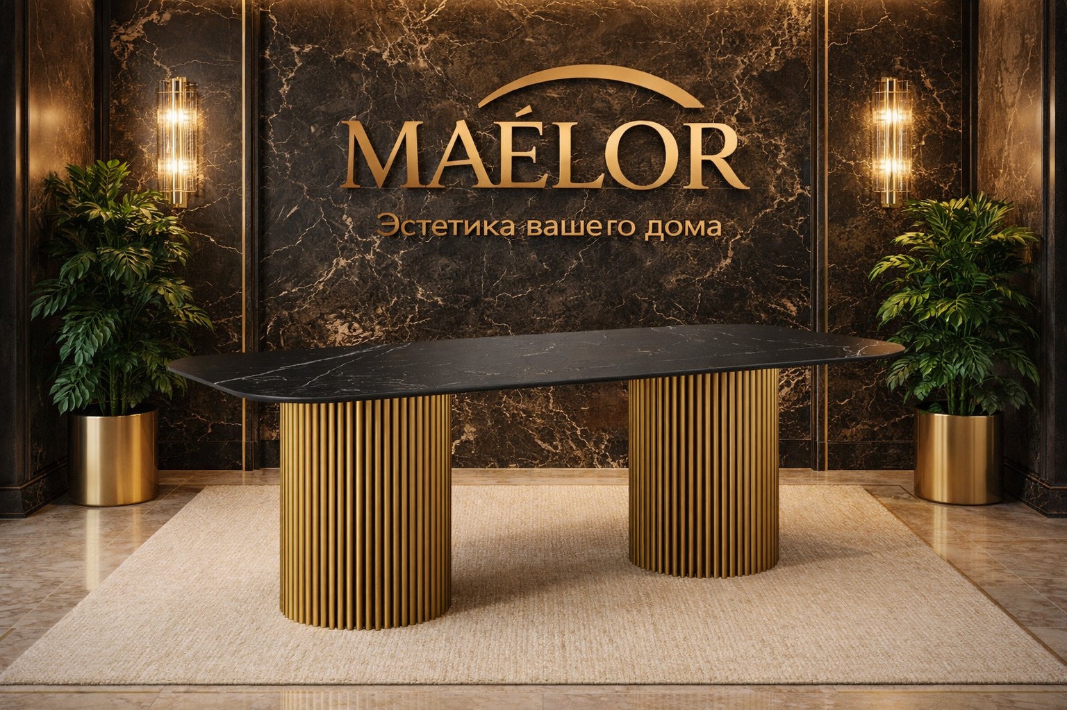 Обеденный стол — шедевр роскоши: столешница из керамогранита в тандеме с рифлёными колоннами-основанием. Элегантность, статус и комфорт в одной детали — центр притяжения любой столовой.